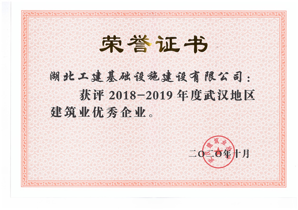 2018-2019年度武漢地區(qū)建筑業(yè)優(yōu)秀企業(yè)