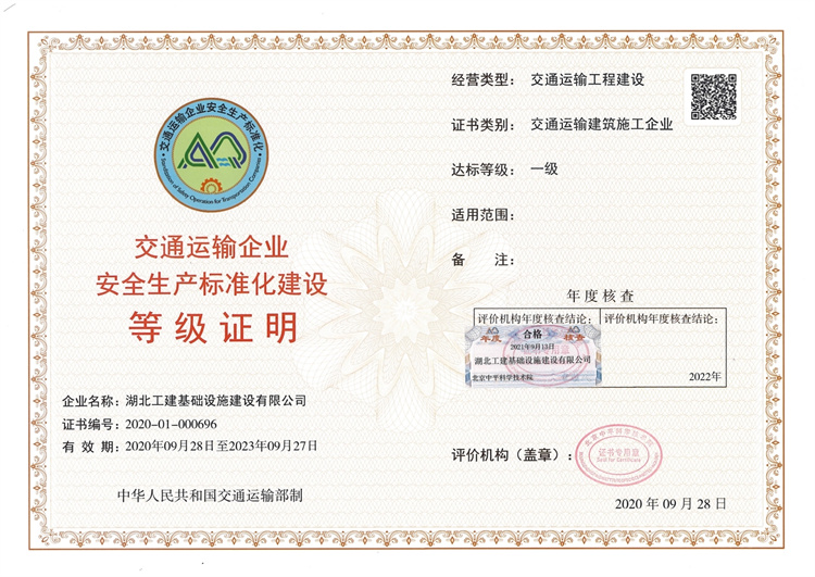 安全生產(chǎn)標(biāo)準(zhǔn)化達(dá)標(biāo)一級(jí)