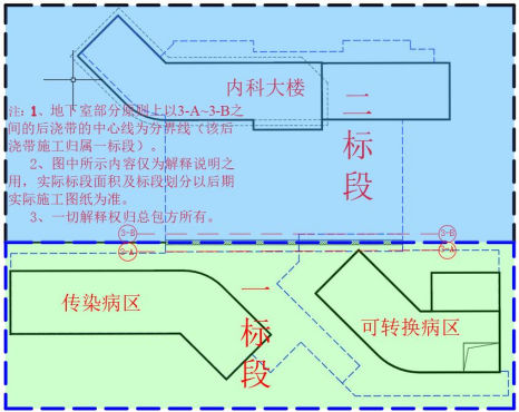 注:圖中所示內容僅為解釋說明之用,實際標段面積及標段劃分以后期實際施工圖紙為準。