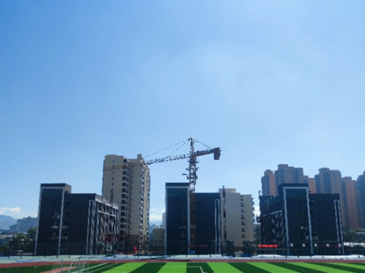 該項目于2020年11月開工,學(xué)生食堂、運動場、風(fēng)雨操場等已于2021年10月交付使用,2022年進場施工的理論教學(xué)樓、3棟宿舍樓計劃于今年8月底交付使用。目前該項目總進度已完成95%,進入收尾階段。
